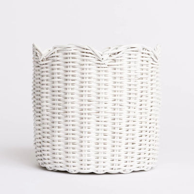 Indulge in the artfully crafted White Wicker Scalloped Containers, perfect for storing a variety of items and infusing your decor with rustic charm. These versatile containers come in three sizes to satisfy all your needs, and are expertly woven with premium white wicker for lasting durability and timeless elegance. Make a statement at your dining table or use them throughout your home for a touch of natural beauty and practicality.