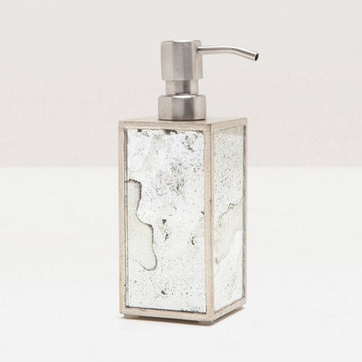 Antiqued mirror bath collection with silver or gold-leafed wood trim.