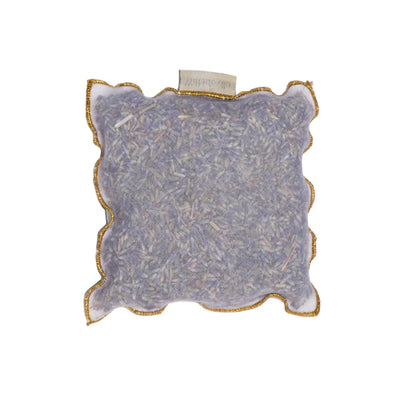 Petite and elegant. This silk lavender filled sachet is perfect for the closet or drawer. A touch of gold thread on the edge is the perfect finish.