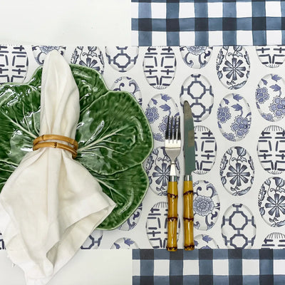 Celebrate with these adorable disposable Chinoiserie Easter Egg Placemats. Set a fabulous Easter table and wow your guests with these blue and white Easter Egg placemats. They come is an easy tear-off pad and clean-up is a breeze. Perfect for luncheons, dinners, and showers. *Placemats come in a 12" x 18" Tear-Off Pad *25 Placemats come in each pad *Each pad comes in a clear cello bag with label