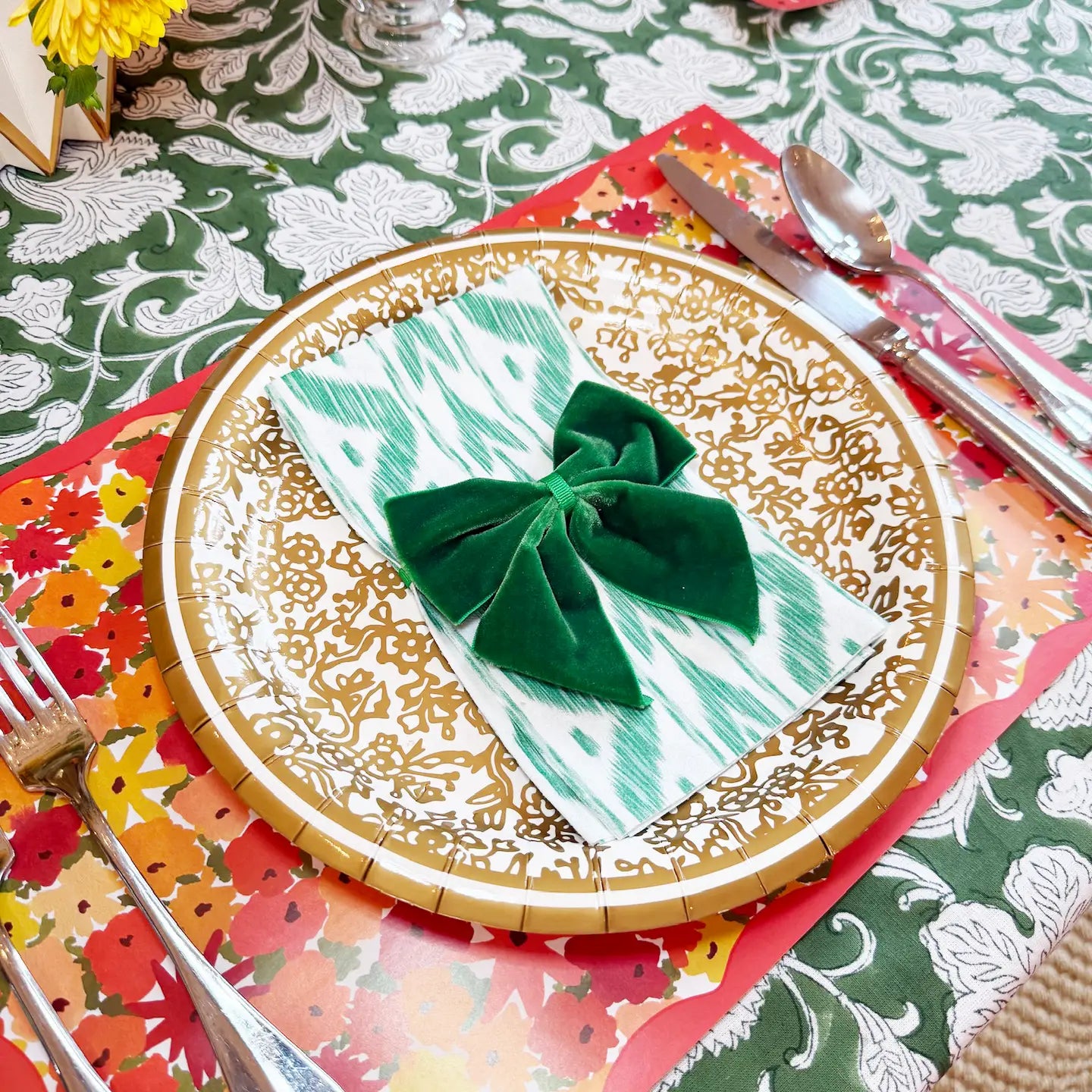 Elevate your customers' hosting game with our Green Ikat Guest Towels / Dinner Napkins which are stylish enough for a holiday dinner table and functional enough for the powder room. These linen-feel napkins combine soft airlaid paper with bold ikat design, making them a go-to for holiday tablescapes and casual entertaining. They’re the kind of versatile product that customers love to grab in multiples - perfect for gift sets, hostess gifts, or last-minute party prep.