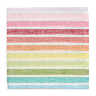 Our new multi color stripe linen has every color of summer. The perfect napkin for any fun summer table! The weight of this napkin is light and crisp, making it an all around joyful summer linen.