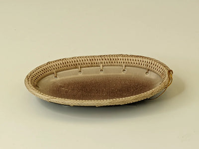 Brown 7" Oval Crackle Glazed Ceramic Basket Tray Dish
