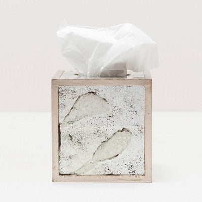 Antiqued mirror bath collection with silver or gold-leafed wood trim.