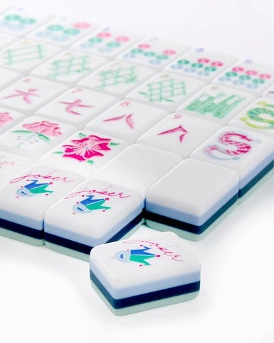 Introducing the Birdie Mahjong collection, inspired by the game's most eye-catching element - the vibrant blue and green Bird Bam! This set features a captivating interplay of navy, seafoam, and light blue tiles, guaranteed to turn heads at your next Mahjong night. These hand-painted tiles are crafted from high-quality materials for lasting use, the Birdie line is perfect for players of all levels. Each set includes a complete set of 160 tiles, making it the ideal gift for Mahjong lovers or a luxurious upgrade for your game nights. So ditch the boring tiles and add a touch of elegance - Let's play Mahjong with the Birdie collection!